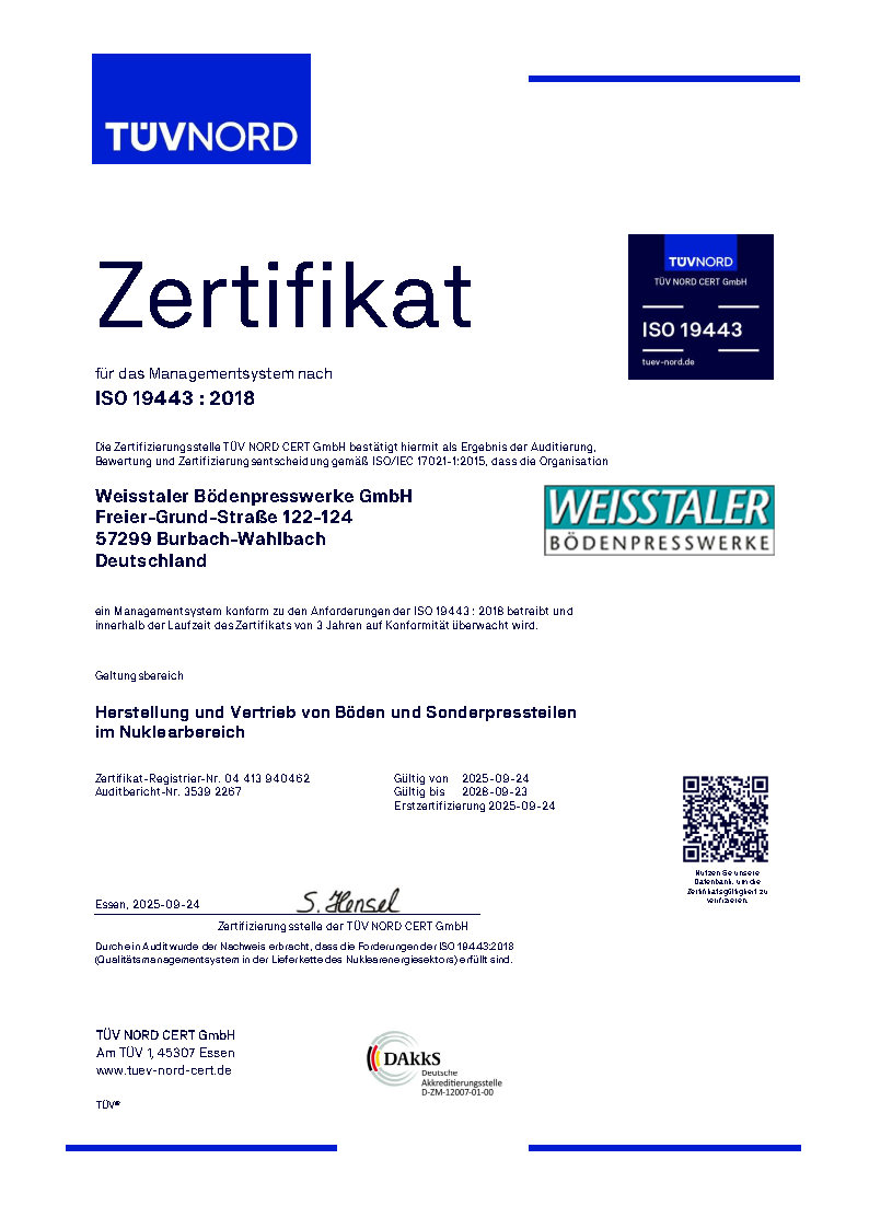 Gut gerüstet für den Nuklearbereich -- Weisstaler erlangt Zertifizerung nach ISO 19443